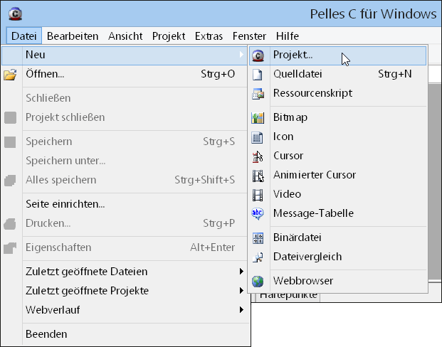 Zunächst sollten Sie ein neues Projekt anlegen.